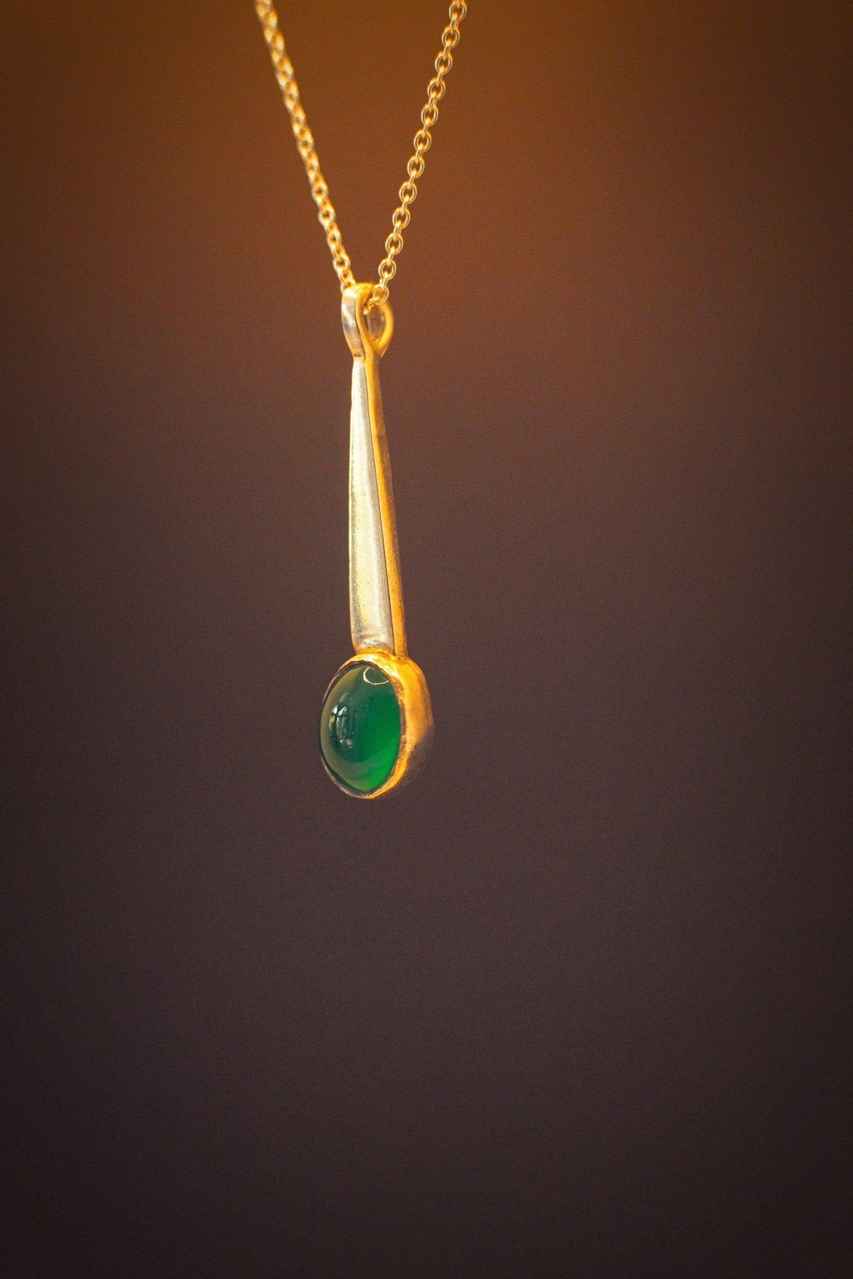 Gold & Green Onyx Oval Pendant