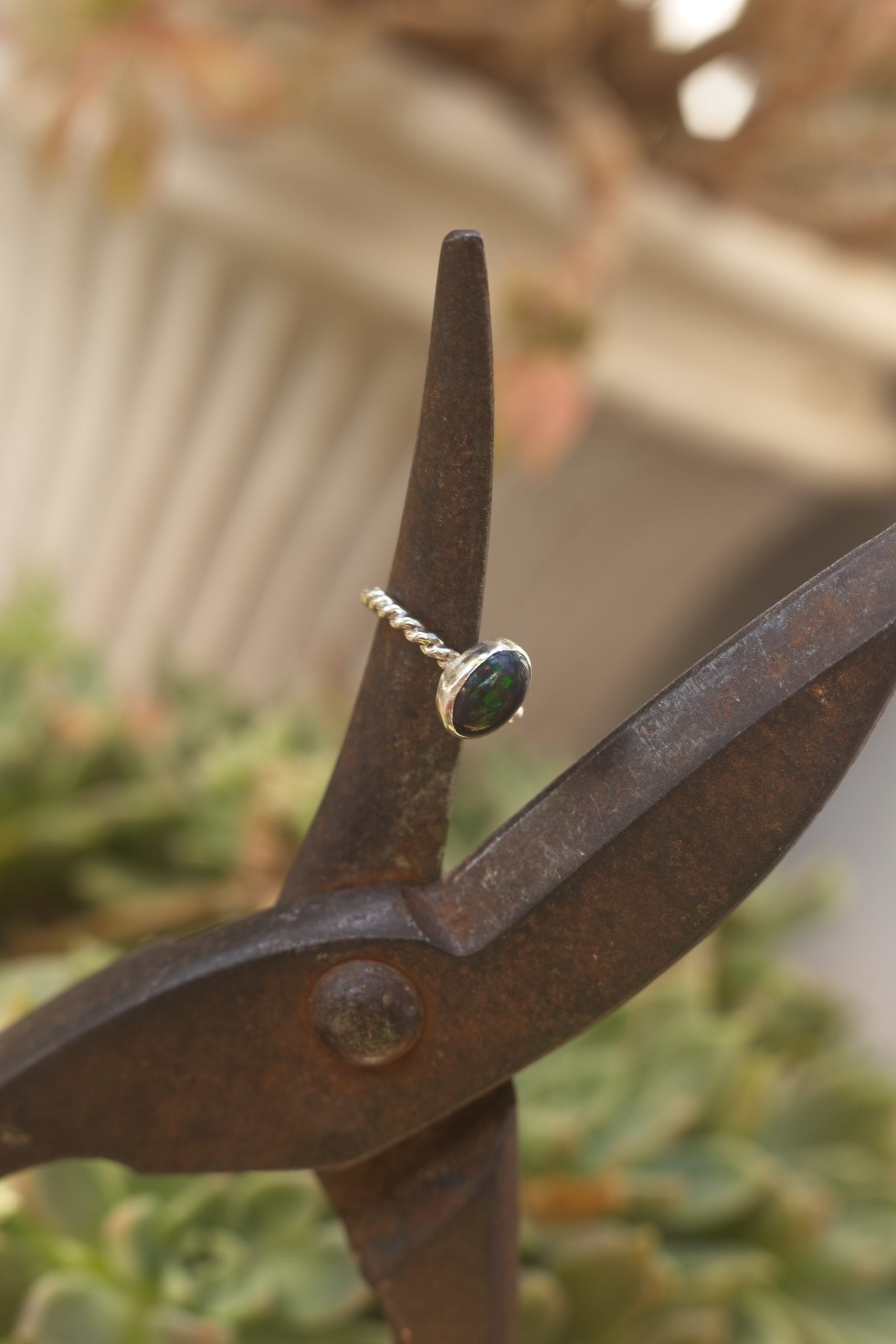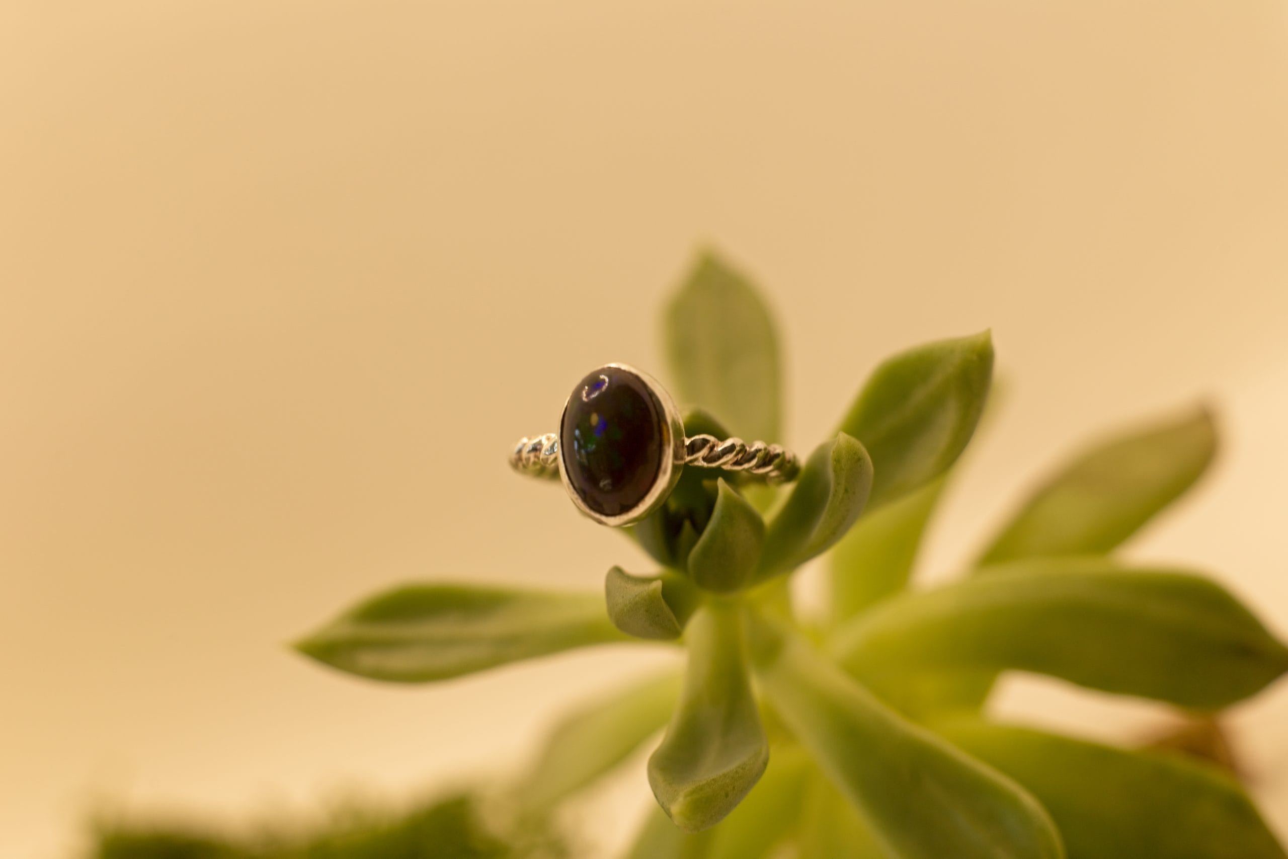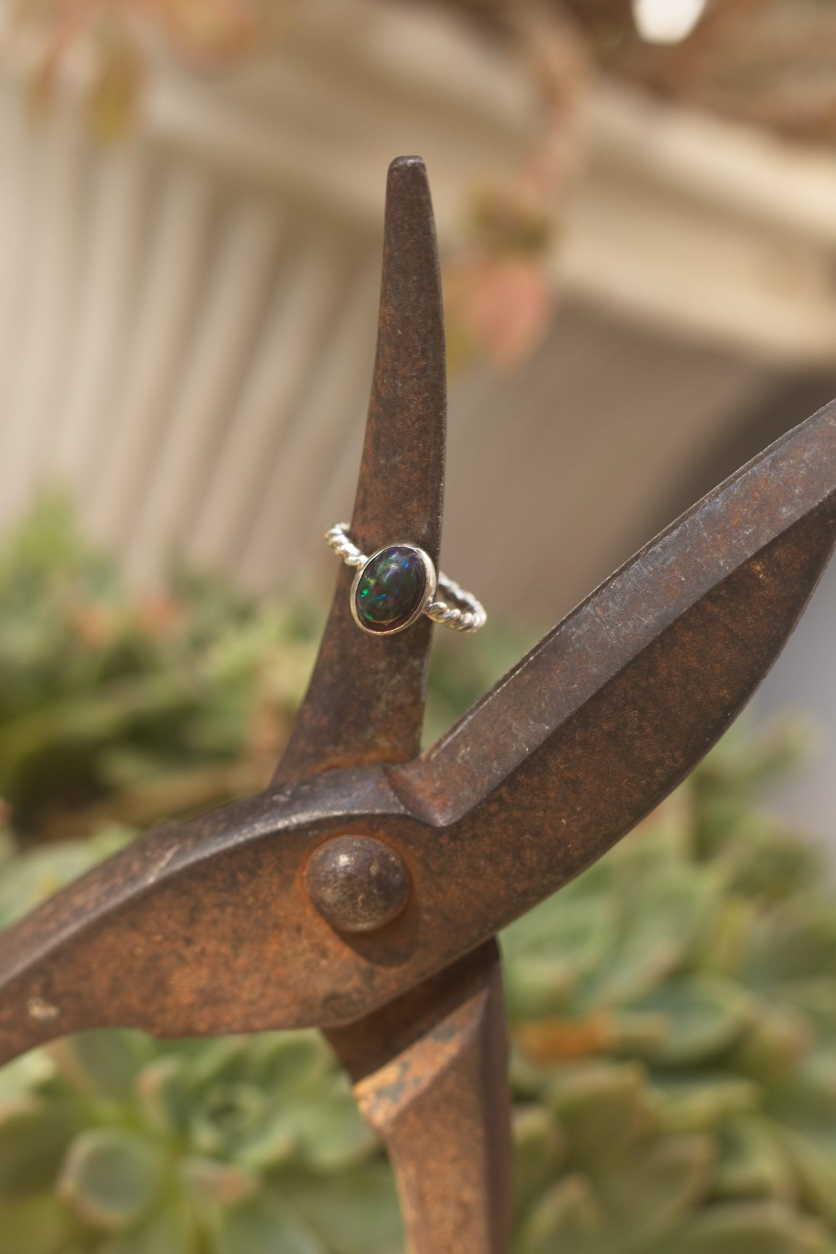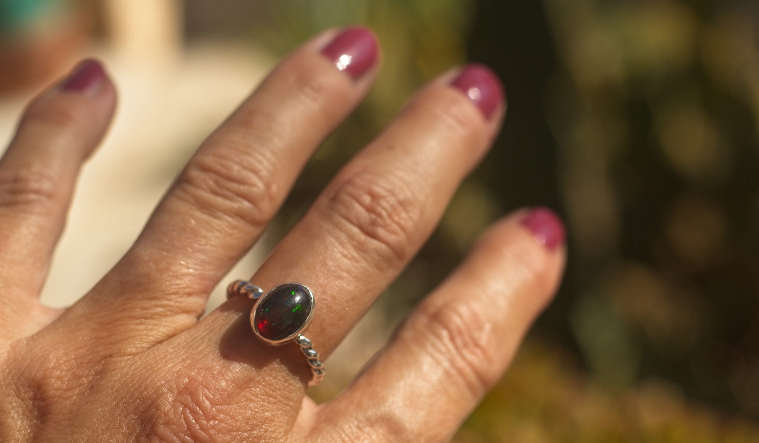 Ocean Dreams on Your Finger. Capture the iridescent flash of the sea in a single, stunning piece. This Laguna Dream Opal Ring beautifully frames a gorgeous 12×9mm oval Opal cabochon. The opal’s legendary play-of-colour shifts with the light, making it a captivating treasure for sunny days and moonlit nights. Set in polished sterling silver, it’s comfortable, chic, and totally mesmerizing. Wear the magic of the Mediterranean.