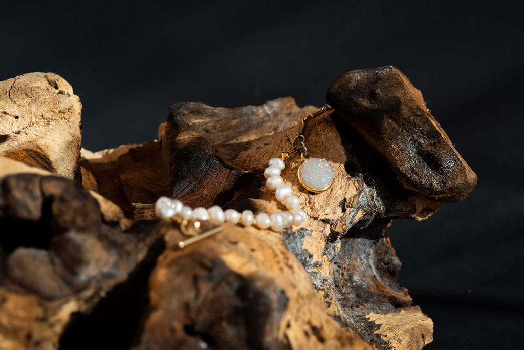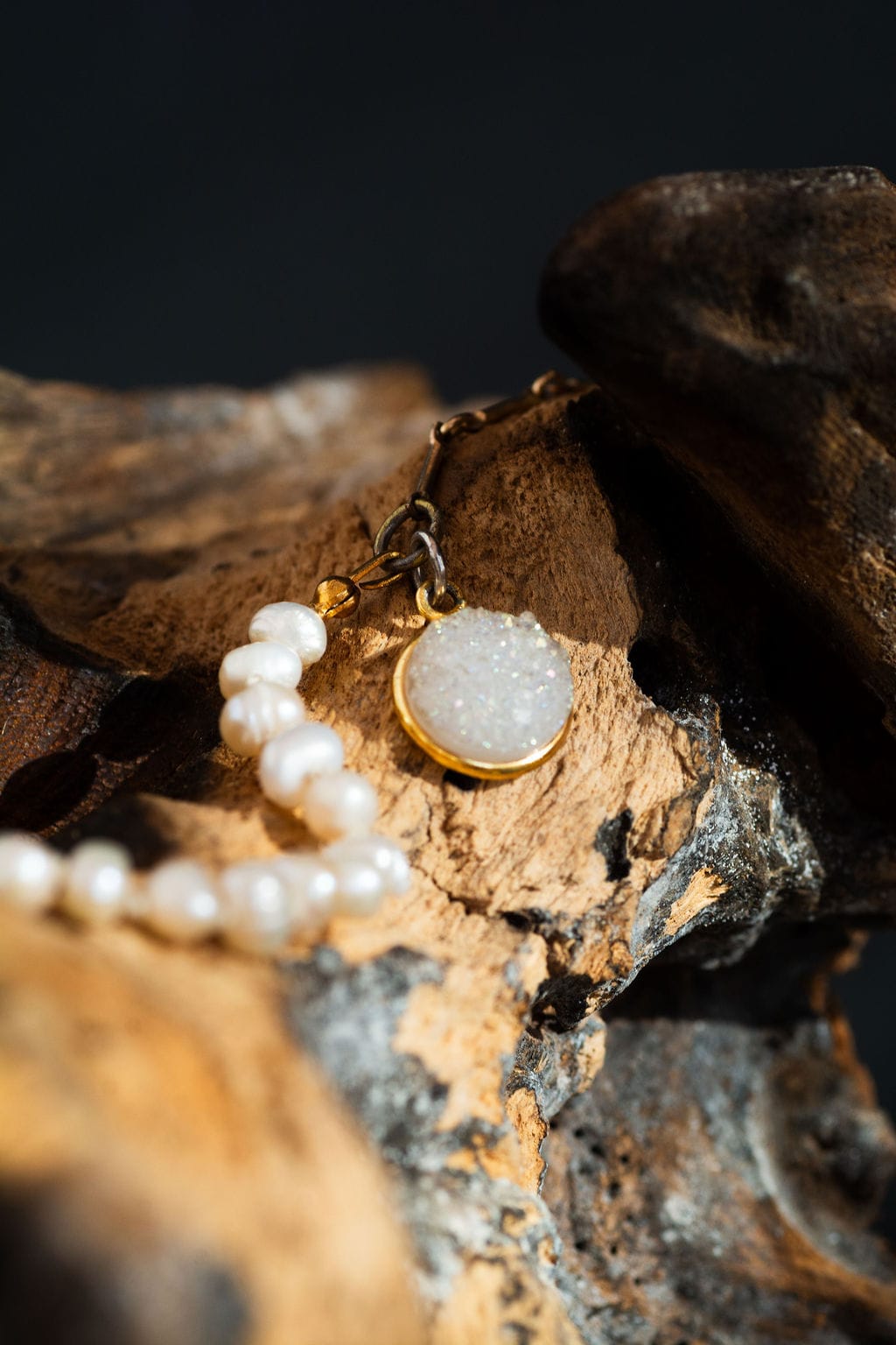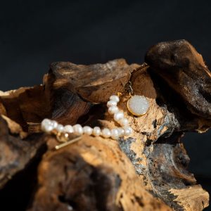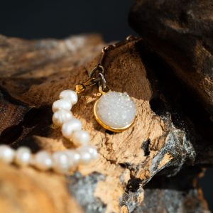 This versatile design is completed with a secure gold-plated bar and loop clasp and punctuated by a brilliant 8mm druzy quartz charm, making it the perfect piece for easy day-to-night wear.
