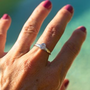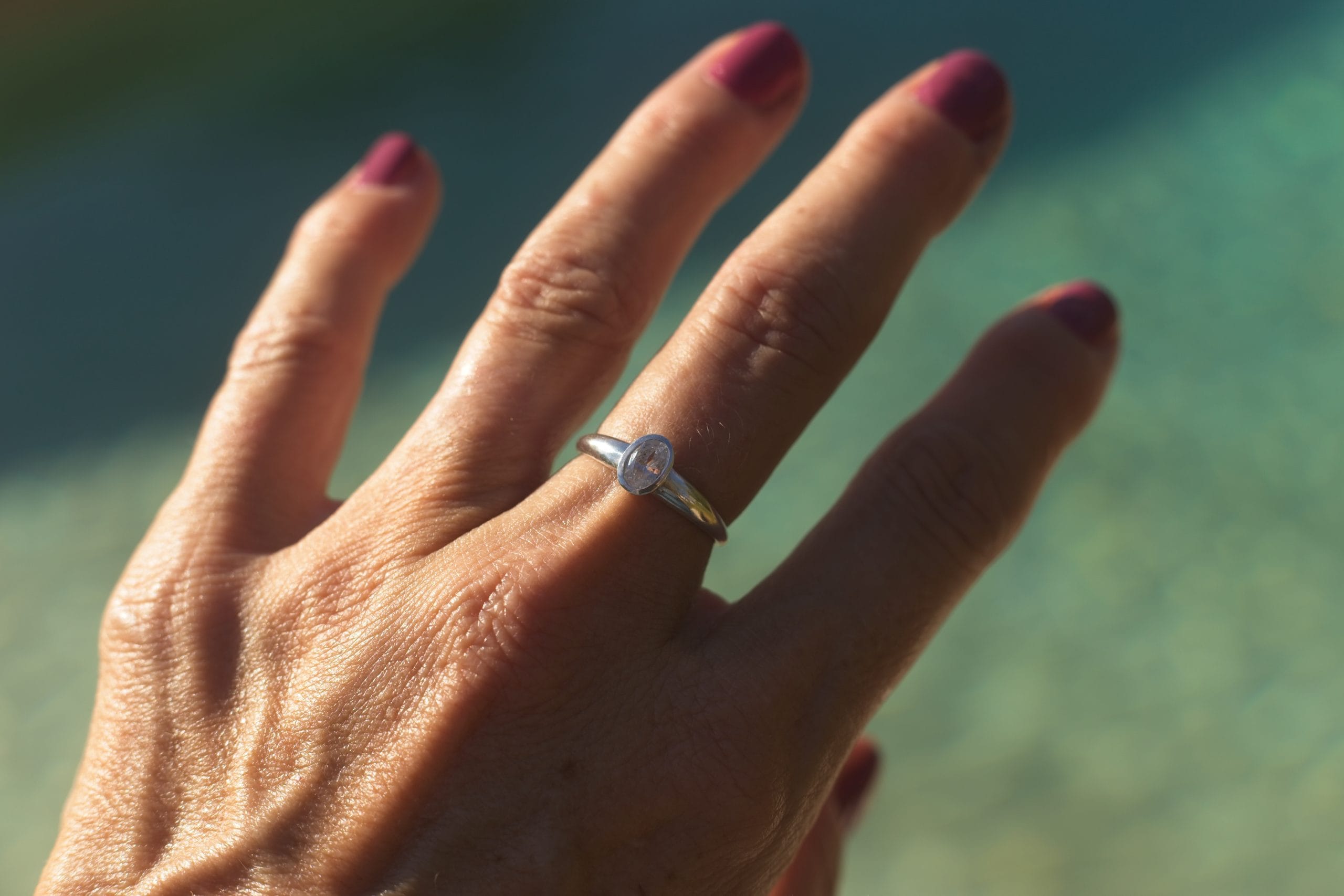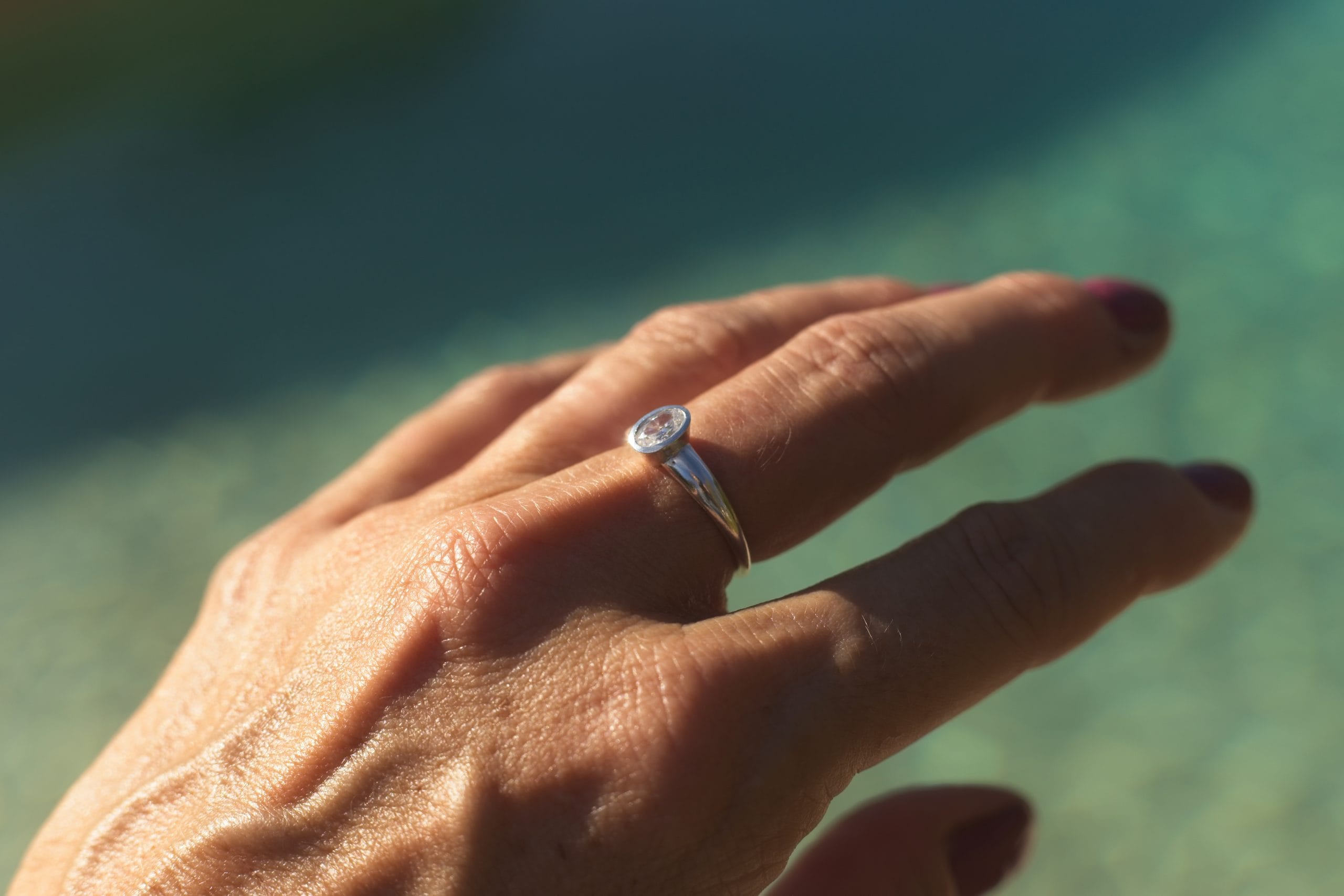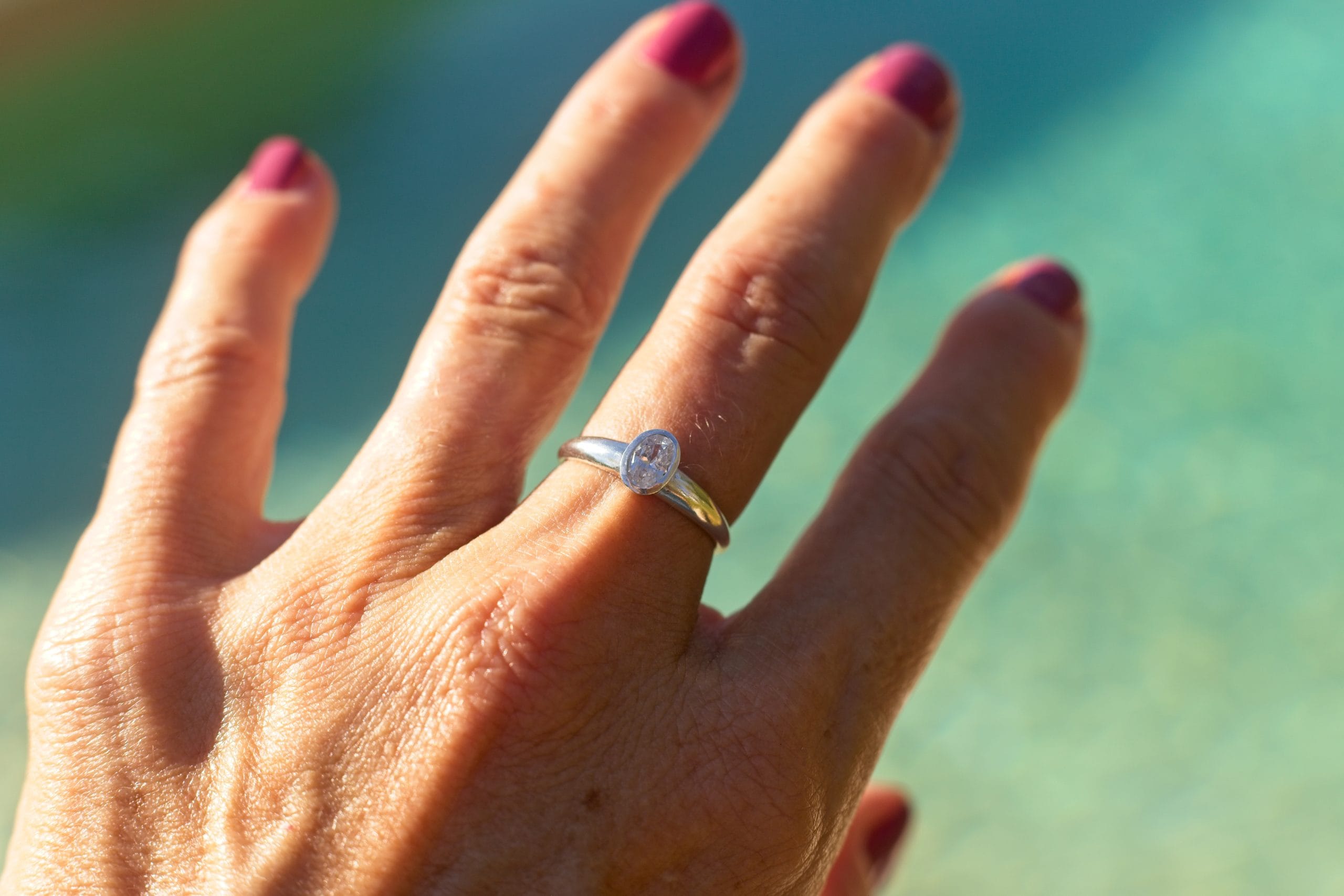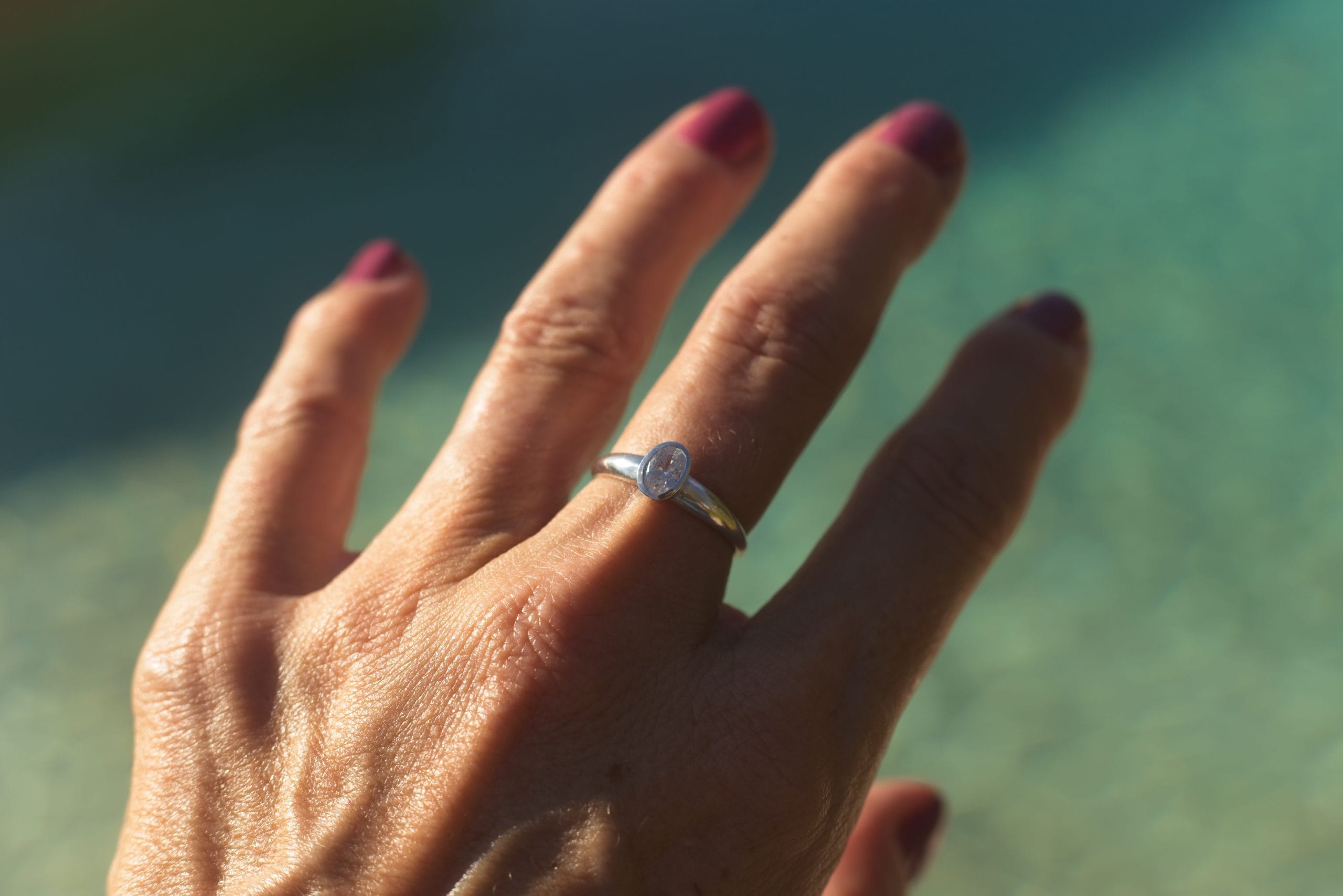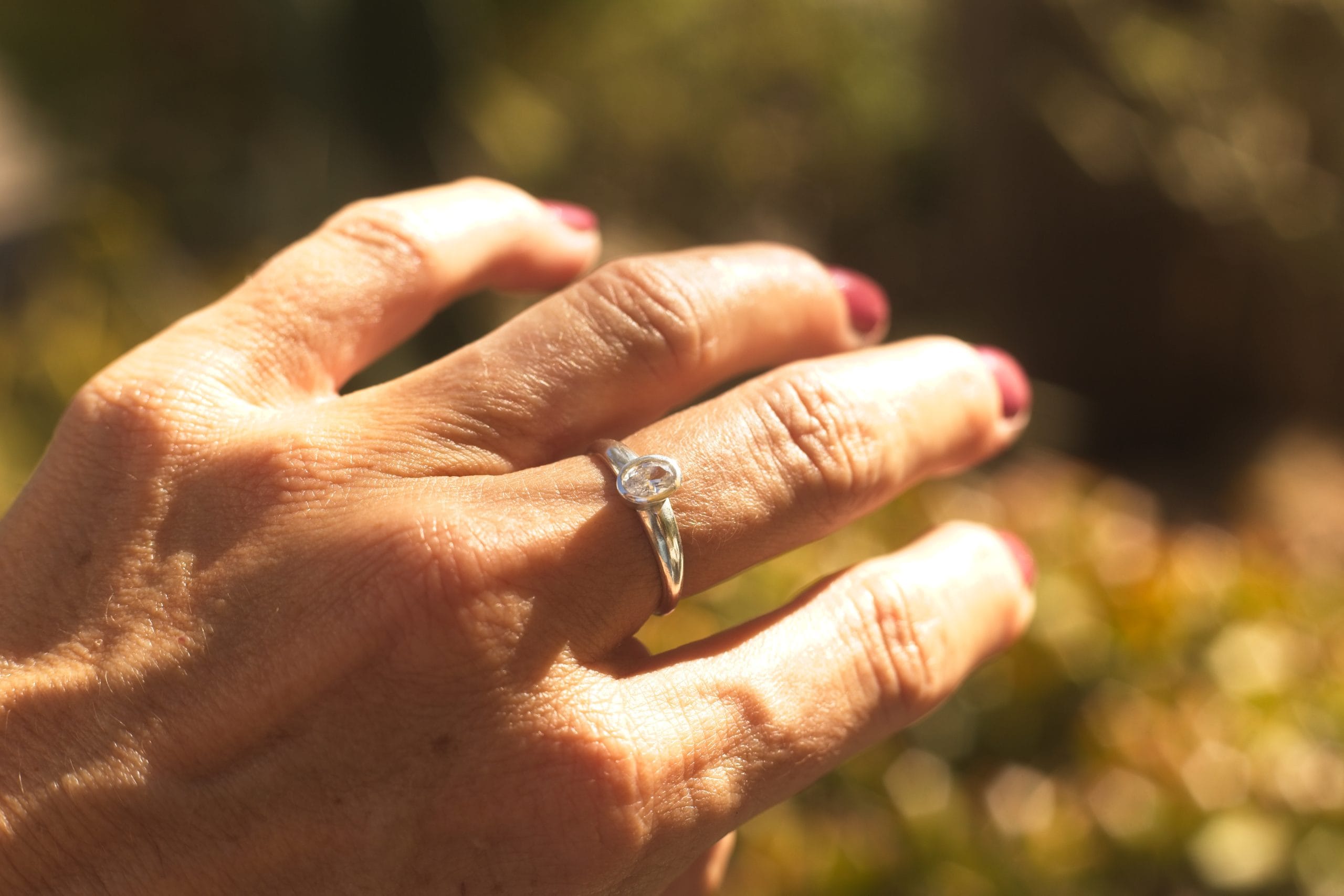 Sleek Profile, Brilliant Shine. Designed for maximum comfort and style, this Streamline Oval Sparkle ring is thinner at the back but broadens gracefully to frame a magnificent 7×5mm Oval Moissanite. The brilliant Moissanite provides that signature, diamond-like luxury and fire. An accessible yet completely luxurious everyday indulgence.
