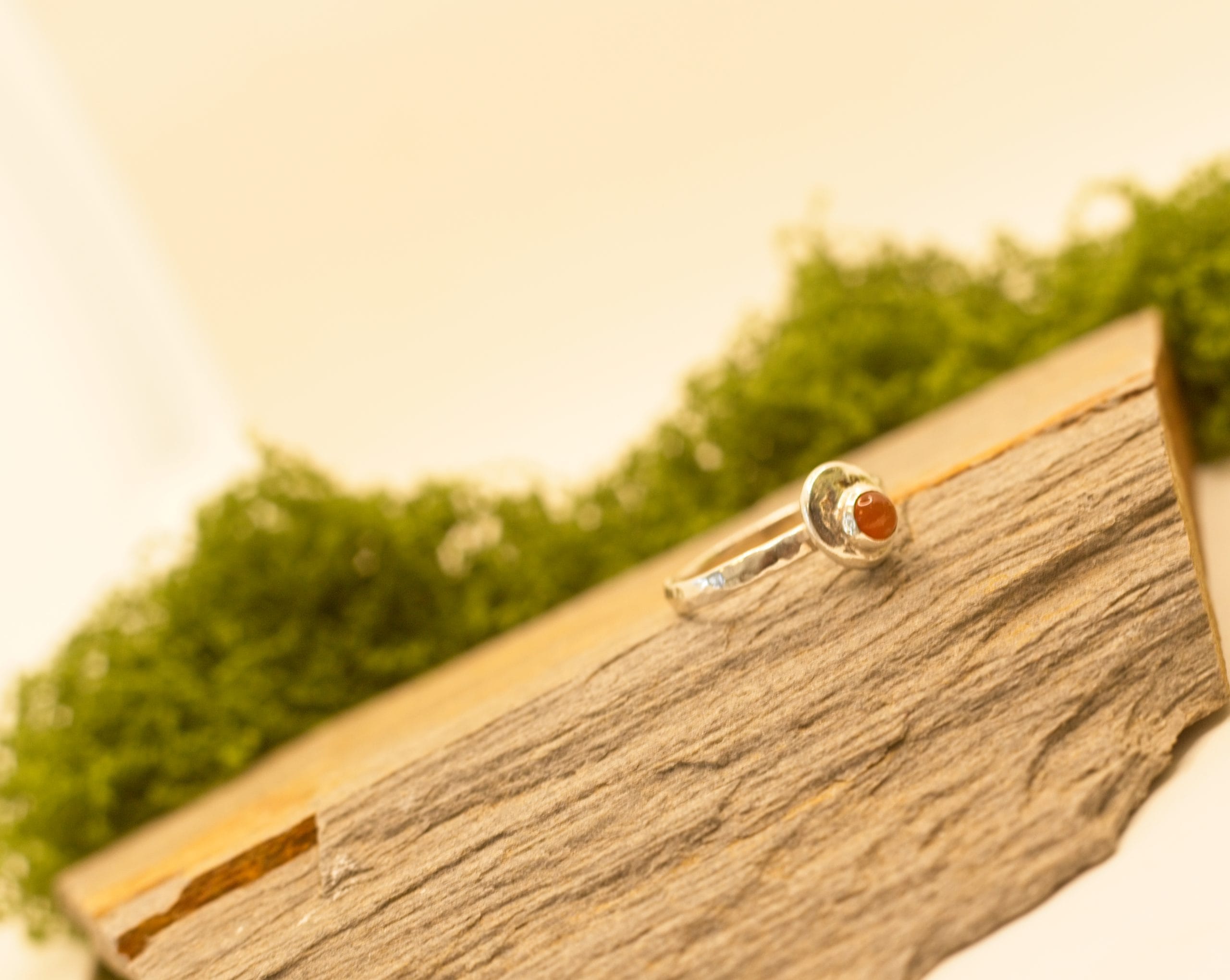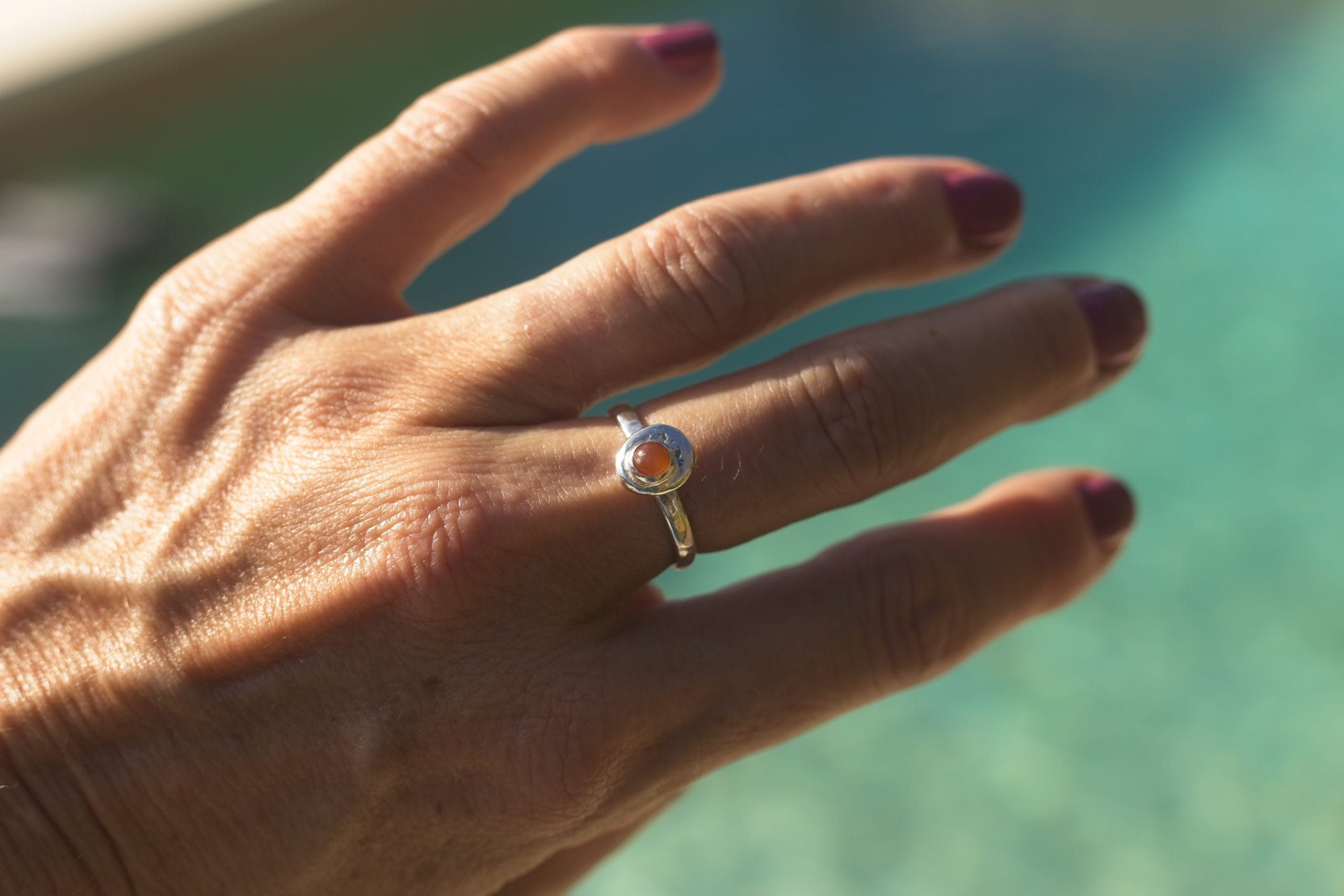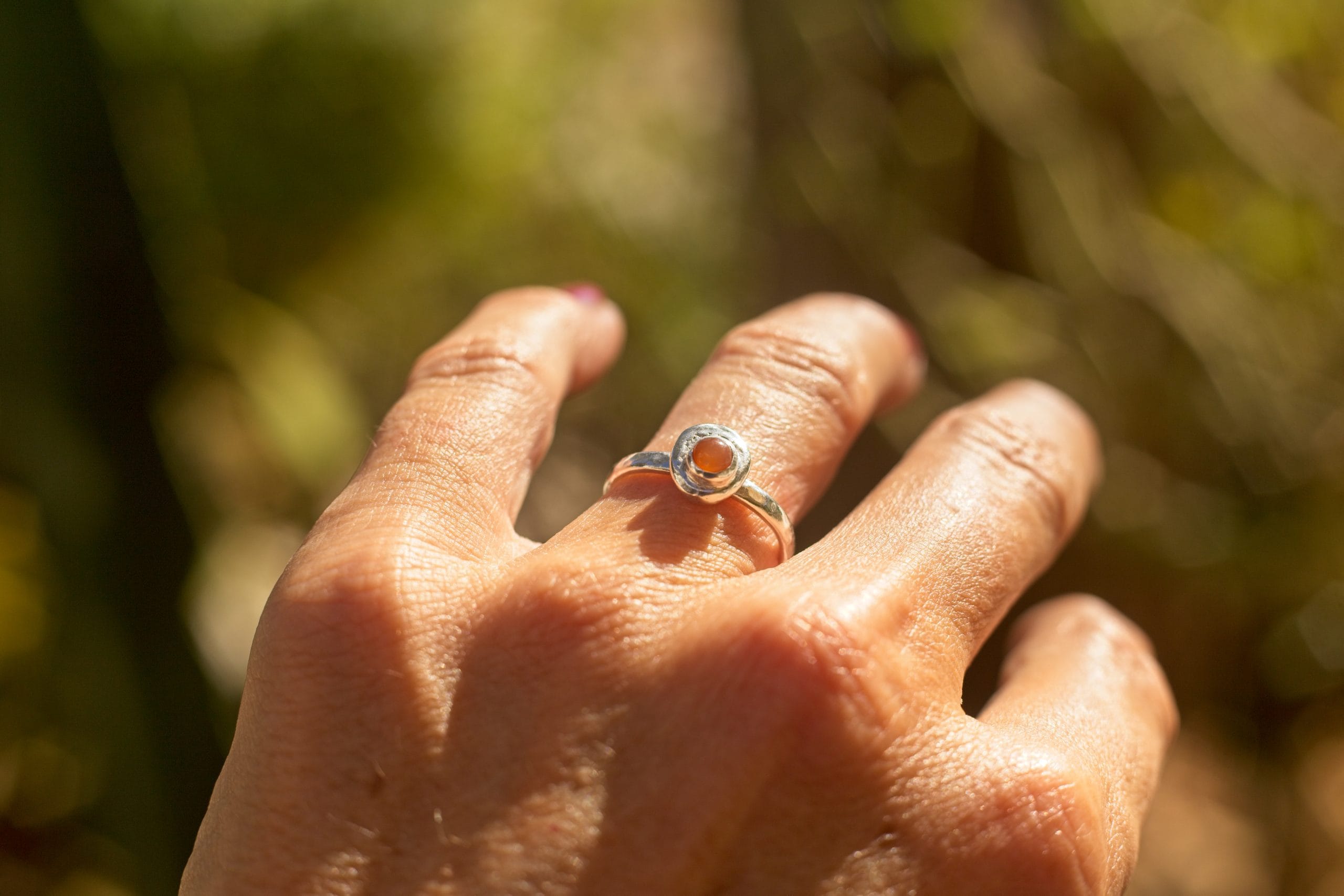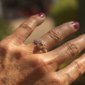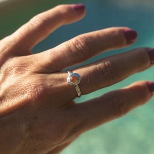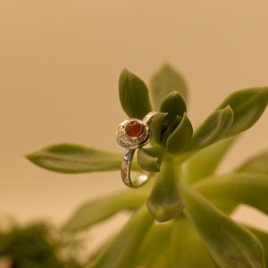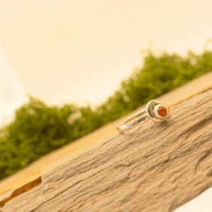 Bold Colour, Playful Edge. This cheerful ring is an ode to the golden hour. The smooth, sunny 5mm Carnelian cabochon is a gorgeous, warm orange that pops beautifully against the textured sterling silver band. It’s a fun, everyday ring that adds a vibrant energy to any look. Perfect for the woman who loves to mix sophistication with a sense of humour.