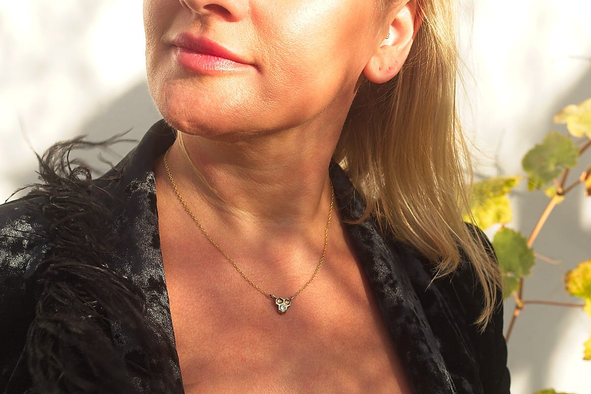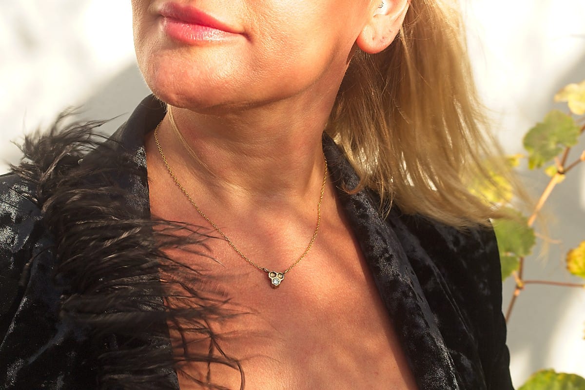 The pendant hangs from a delicate gold-filled chain and fastens with an elegant ring and bar (toggle) clasp, offering both modern style and easy wear. It’s the perfect subtle piece for everyday glamour
