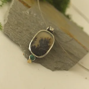 Moss agate pendant with gold accent