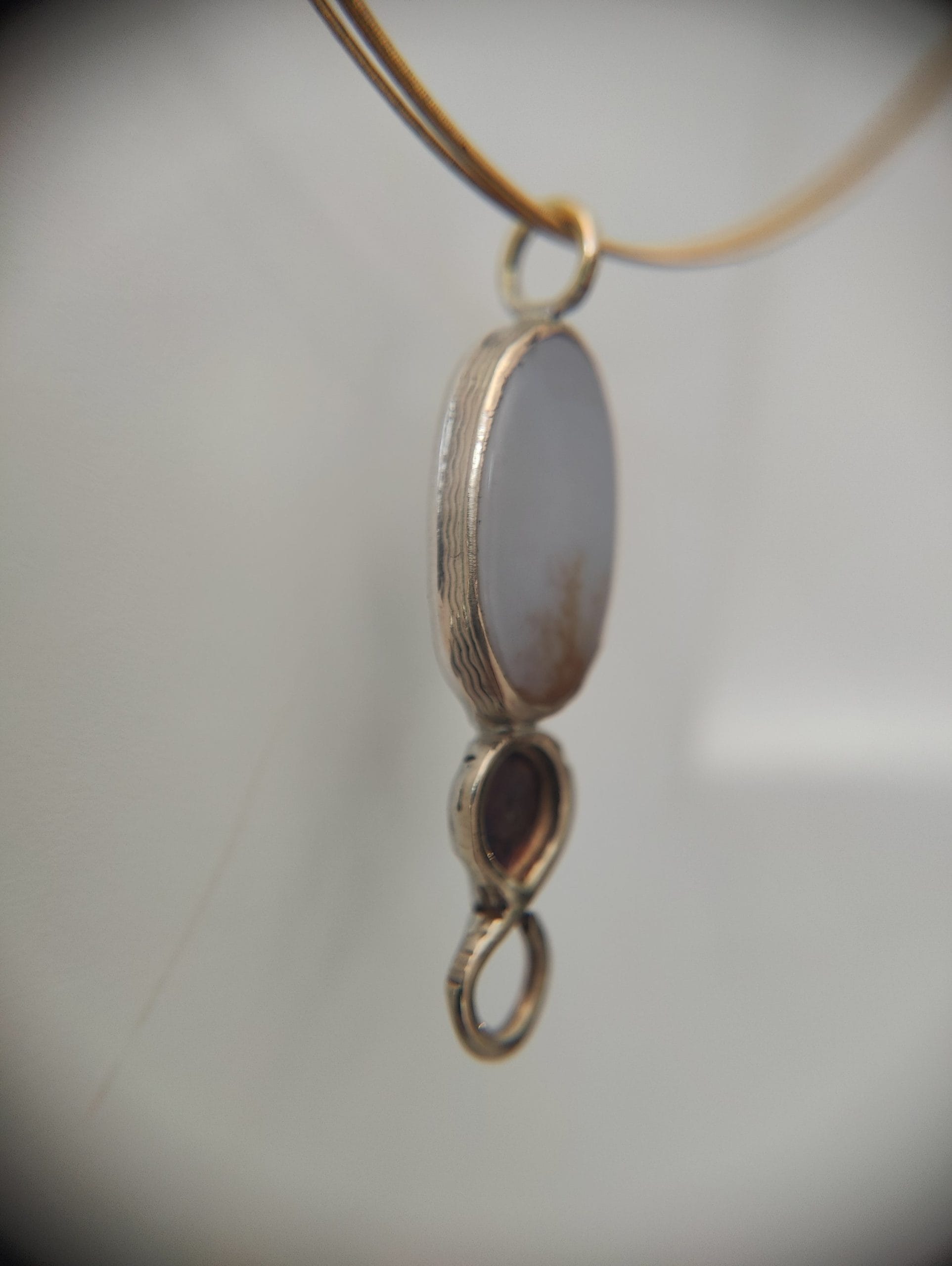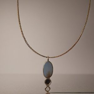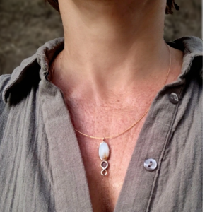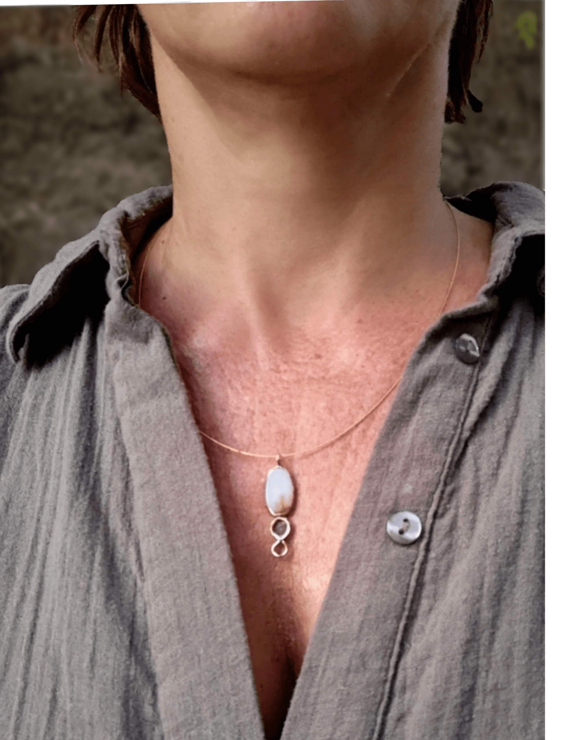 Discover the quiet beauty of this moss agate pendant. The stone is nestled in a stunning antique Portuguese 14ct gold bezel, finished with recycled 14ct gold details. It’s a truly unique piece that blends old-world charm with a modern touch.